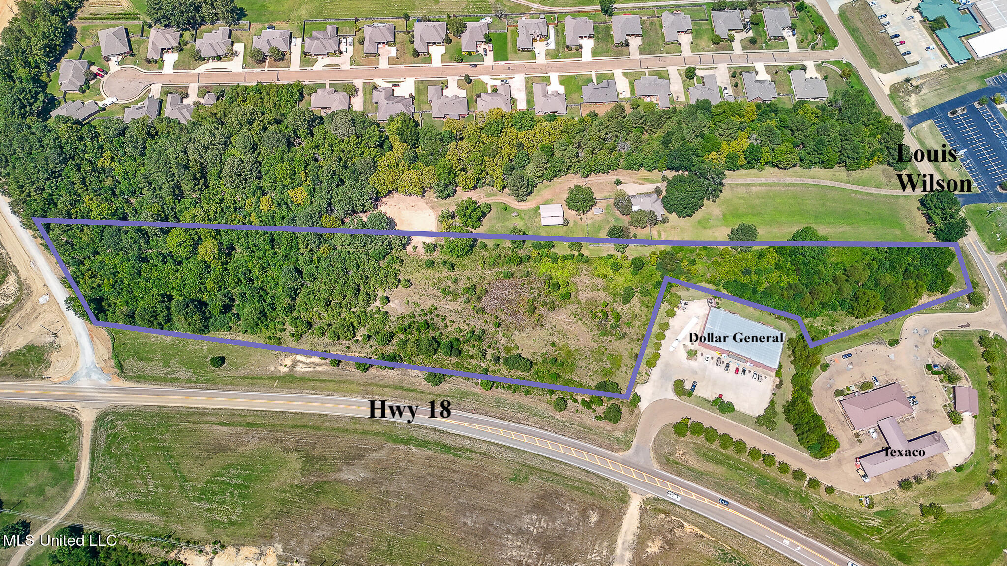 Rare opportunity in Rankin County!!! This 6.83± acre tract at the high-traffic intersection of Hwy 18 & Louis Wilson Dr is Zoned NC (Neighborhood Community), this property is primed for retail, office, or mixed-use development with thousands of cars passing daily. Take advantage of multiple access points at one of Brandon's most desirable commercial corners!!!