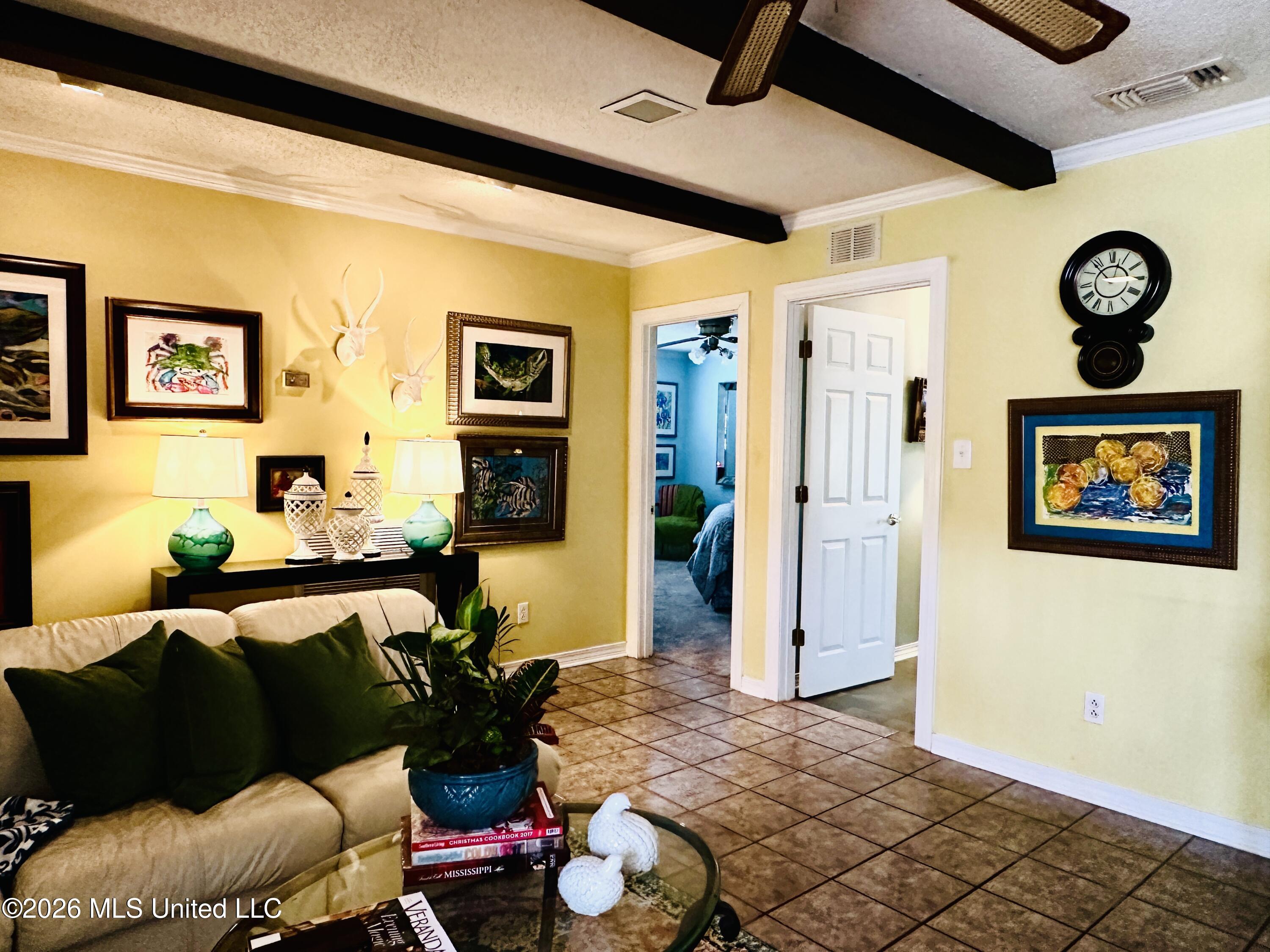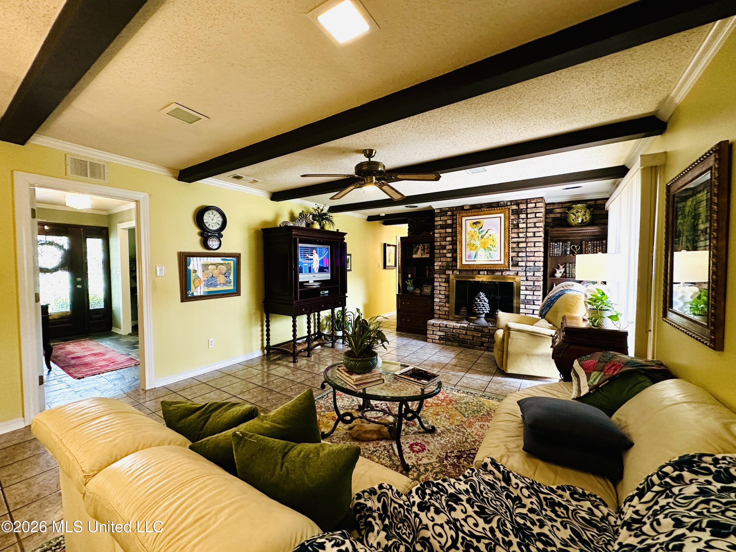 Details:Looking for that one-story home in Longfellow Acres for entertaining and get-togethers? Well, this is it. Come enjoy previewing this five-bedroom, 3 bath home. This home features a breathtaking leaded glass front door with sidelights that open to a wide foyer. You will walk straight into a large beautiful formal living and dining room featuring beautiful floors and views out the front windows overlooking the large front yard and beautiful brick sidewalk arched with oak trees. The kitchen is functional and features a small breakfast area and views of the backyard. The large comfortable family room has a vaulted ceiling with wooden beams and a fireplace bracketed by built-in bookcases. In the backyard, there is a storage room and a small storage shed and plenty of room for gardening and flower beds. Double carport. Home is well within the walking distance to the beach, City Beach Park. You can join the Yacht Club and/or Pascagoula Country Club for swimming, boating, and golfing choices. At the west end of Beach Blvd is public parking and a public boat launch.