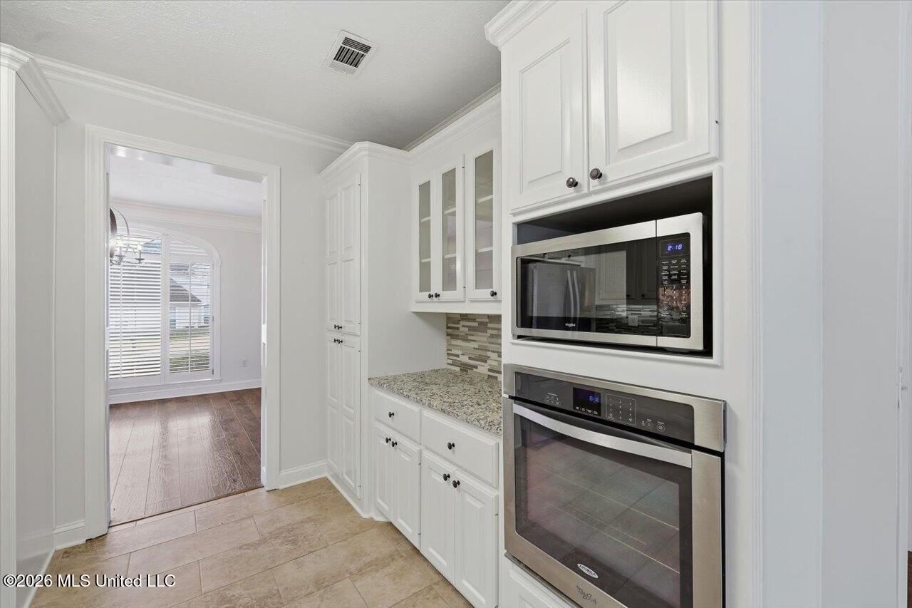 Step inside this beautiful home, where you'll be greeted by gleaming wood floors that flow throughout the main living areas. The expansive living room invites relaxation, while the kitchen is a culinary enthusiast's delight, featuring elegantly reworked granite countertops, stunning tile floors, and a stylish backsplash paired with freshly painted cabinets. Modern conveniences abound, including a built-in microwave and a gas cooktop, making meal prep a breeze.