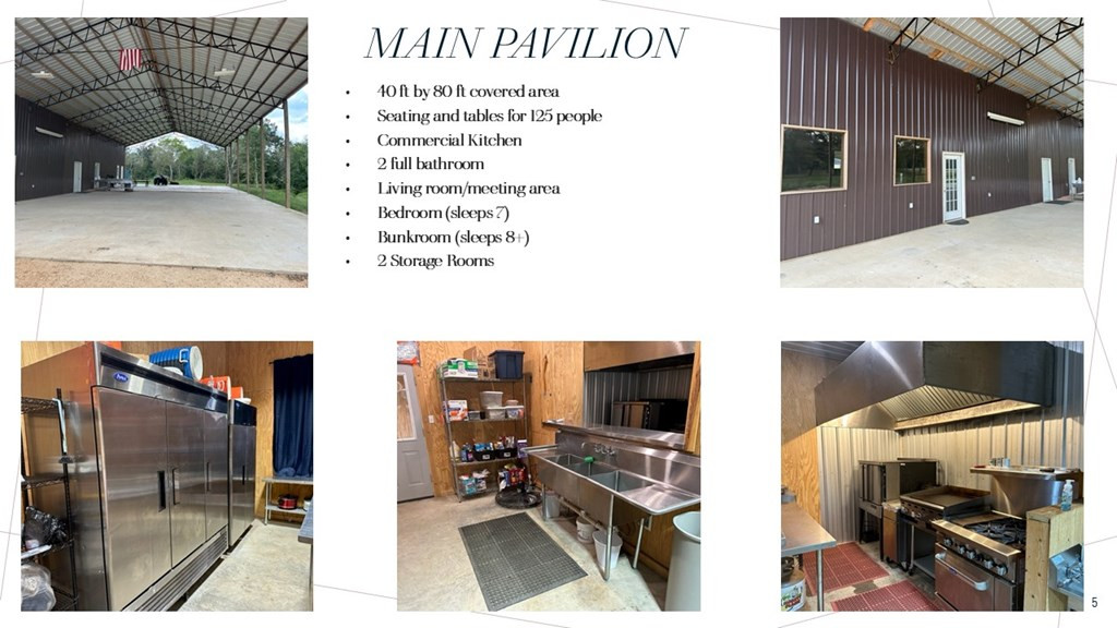 Details:Camp Silver Creek-Welcome to a rare opportunity to own an 82 acre recreational retreat designed for hosting, exploring, and enjoying the outdoors. With a mix of cleared land, wooded habitat, and thoughtfully developed facilities, this property offers the ideal combination of comfort, recreation, and long-term income potential. At the heart of the property is a central pavilion featuring a fully furnished living space with 2 bedrooms, 16 total beds (8 bunk beds), a commercial-grade kitchen, a kitchenette with refrigerator and sink, 2 showers, 2 toilets, an outdoor shower, and mini-split A/C for year-round comfort. A covered front porch and fire pit overlook the nearby creek, creating a peaceful and scenic atmosphere. Built with metal siding and roofing, the structure is both durable and low-maintenance. Complementing the pavilion are 7 additional bunk-style cabins, each with 16 beds and designed with comfort and easy upkeep in mind. In total, the property can accommodate up to 125 guests, making it ideal for youth camps, church retreats, corporate events, family reunions, or short-term lodging opportunities. The retreat is currently being used by church groups and other youth-based organizations for a variety of outdoor programs and group gatherings. The land itself is just as impressive—approximately 82 acres including nearly 40 acres of wooded habitat with established trails for hiking, nature walks, or ATV rides. The remaining acreage includes open recreational space, a stocked pond, shaded picnic areas, and access to two beautiful spring-fed creeks ideal for kayaking, swimming, or simply relaxing by the water. What truly sets this property apart is its growth potential. There is ample room to expand cabin rentals, build additional lodging near the creek, develop a full-scale RV campsite, or add adventure features like an aerial zip line course or treehouse cabins. Whether you're planning a larger hospitality venture or simply want space to grow, this property offers unmatched flexibility and natural beauty. Nearby Attractions: The Yards Sportsplex Red Bluff (10 min) Bogue Chitto River (15–20 min) Lake Columbia / Lake Bill Waller (20 min) Hattiesburg (under 1 hour) New Orleans, Baton Rouge (2 hours) Jackson MS (less than 2 hours) Mobile AL (2.5 hours) Schedule your private tour today and see all this unique retreat has to offer!