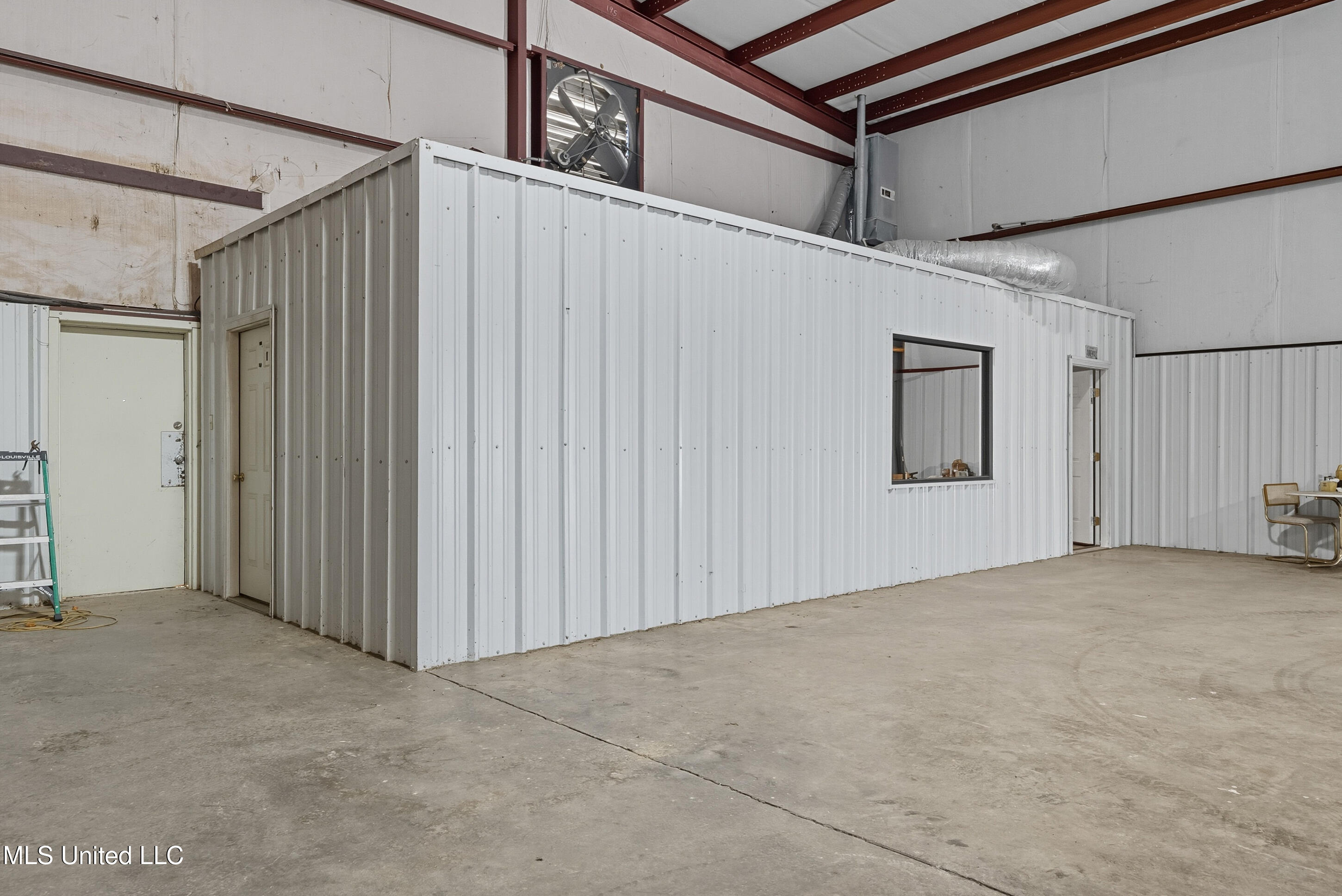 concrete floor, excellent lighting, electrical service, and ample room for tools, parts, and
