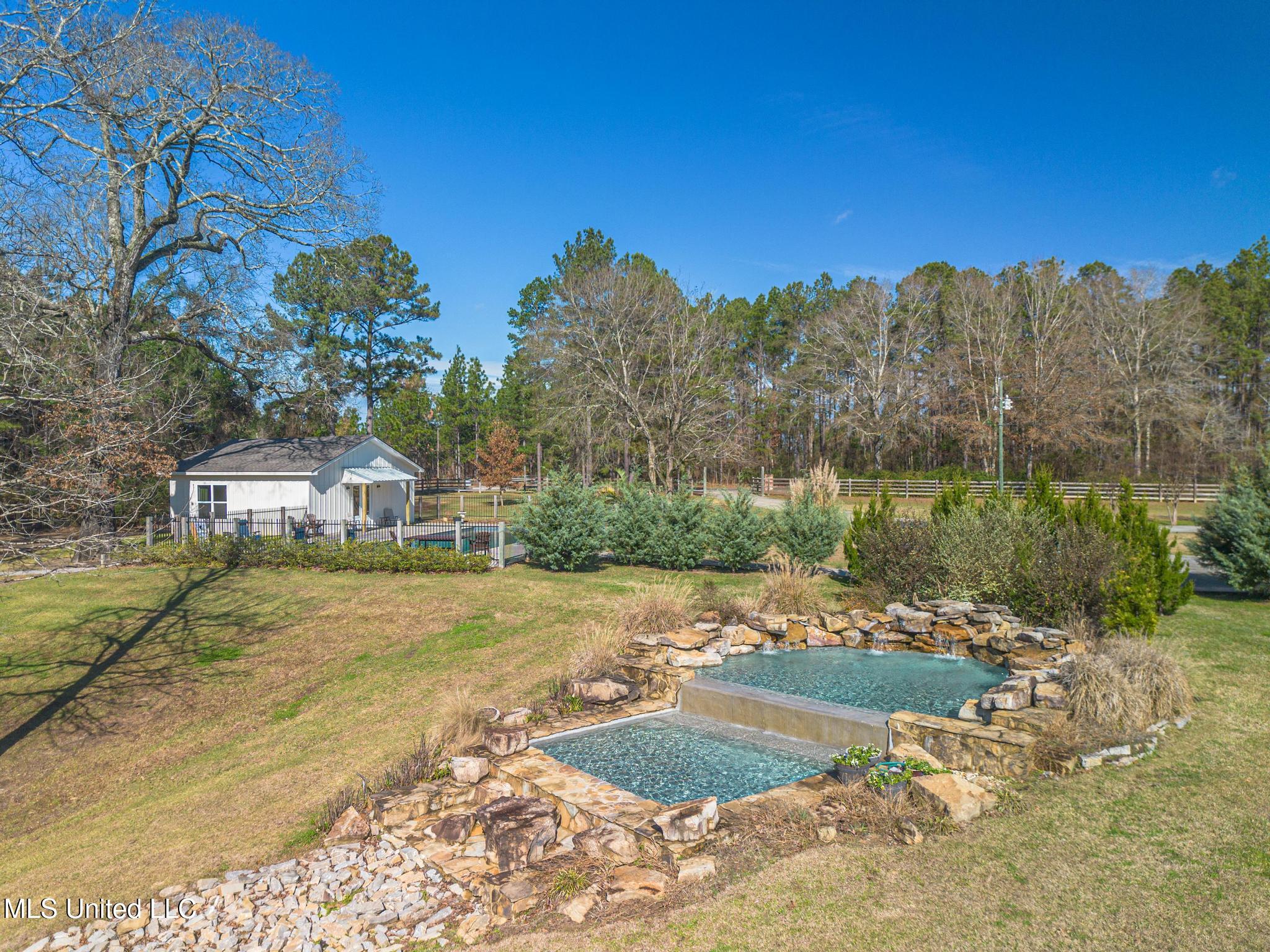 A newly added private cottage near the pool is currently used as a groom's suite and guest lodging during events, offering additional rental or guest use potential. Nearby is a 23 x 47 pool with pump house, saltwater tank, well system, and outdoor showers. Parking includes a limestone-pressed lot with lighting for 250 plus guests and a separate gravel drive entrance. Additional improvements include a 30 x 40 workshop with power and half bath, RV hookups, and chicken coops.