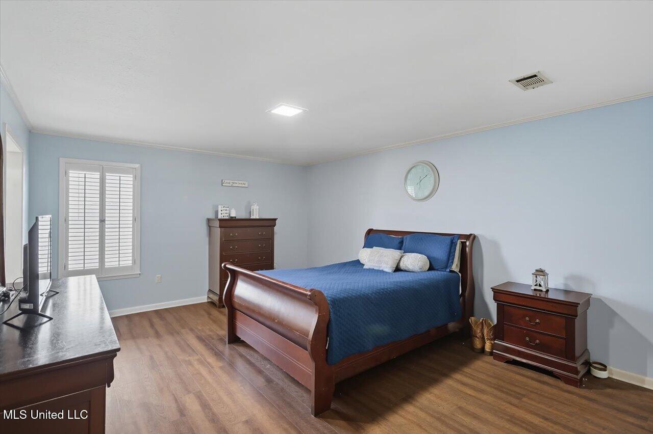 The master suite boasts an ensuite bath and a large walk-in closet. An additional guest room on this wing also features a private bath with hallway access, perfect for guests.