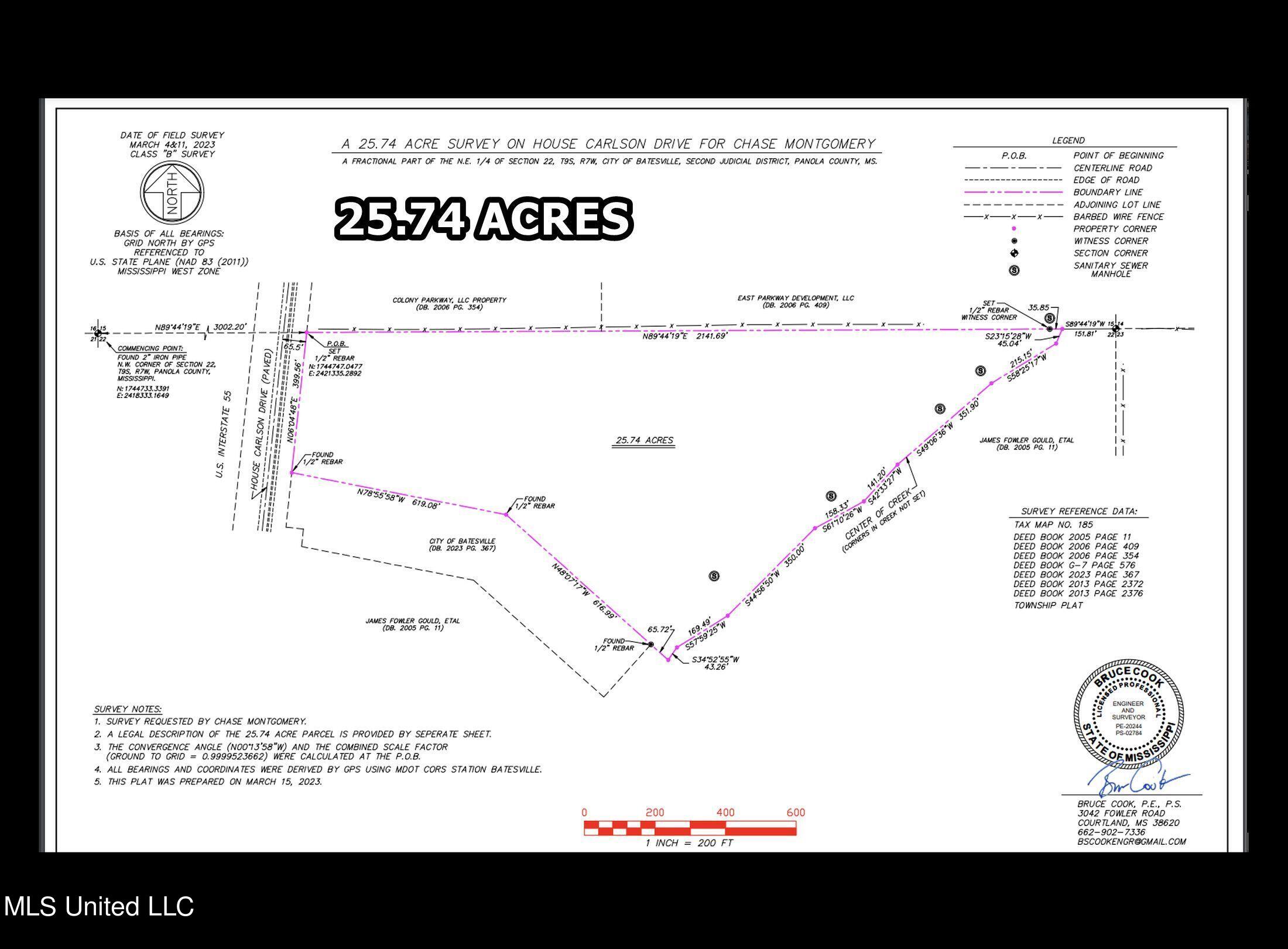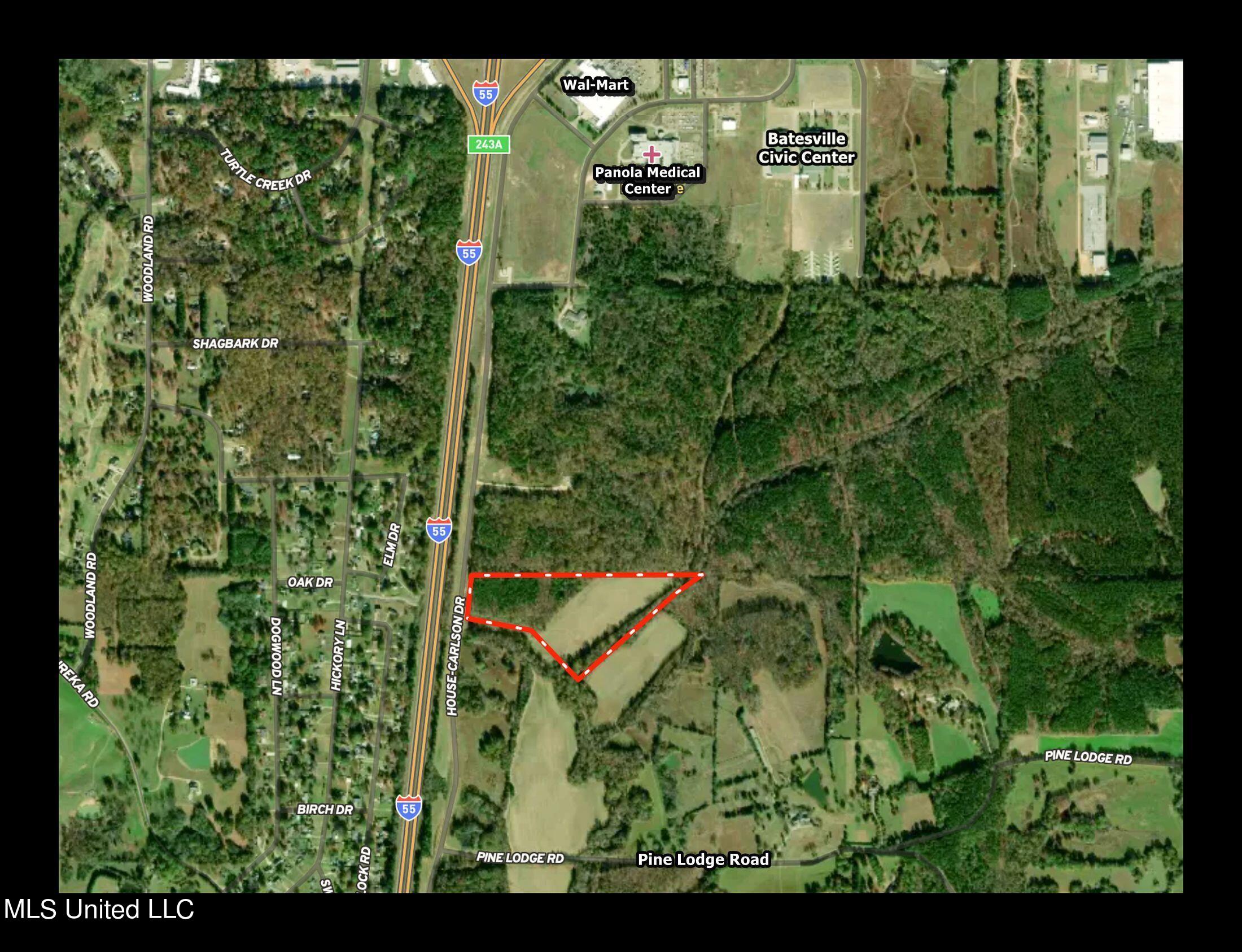 Details:Invest now. Profit later. Prime location just north of beautiful Pine Lodge Road and only a 4-minute drive to I-55. This tract consists of hardwoods and farm ground and is in a perfect spot for residential development. Commercial property is only half a mile away, so future potential is there, too, with high visibility directly from I-55. Shopping and dining are nearby, and it's a short drive to Ole Miss and also convenient to two large area lakes, Enid and Sardis. The City of Batesville owns the road bordering the property line, but the road is solely designated to that property, and the owner has full access to use etc. All utilities available including fiber optic internet.