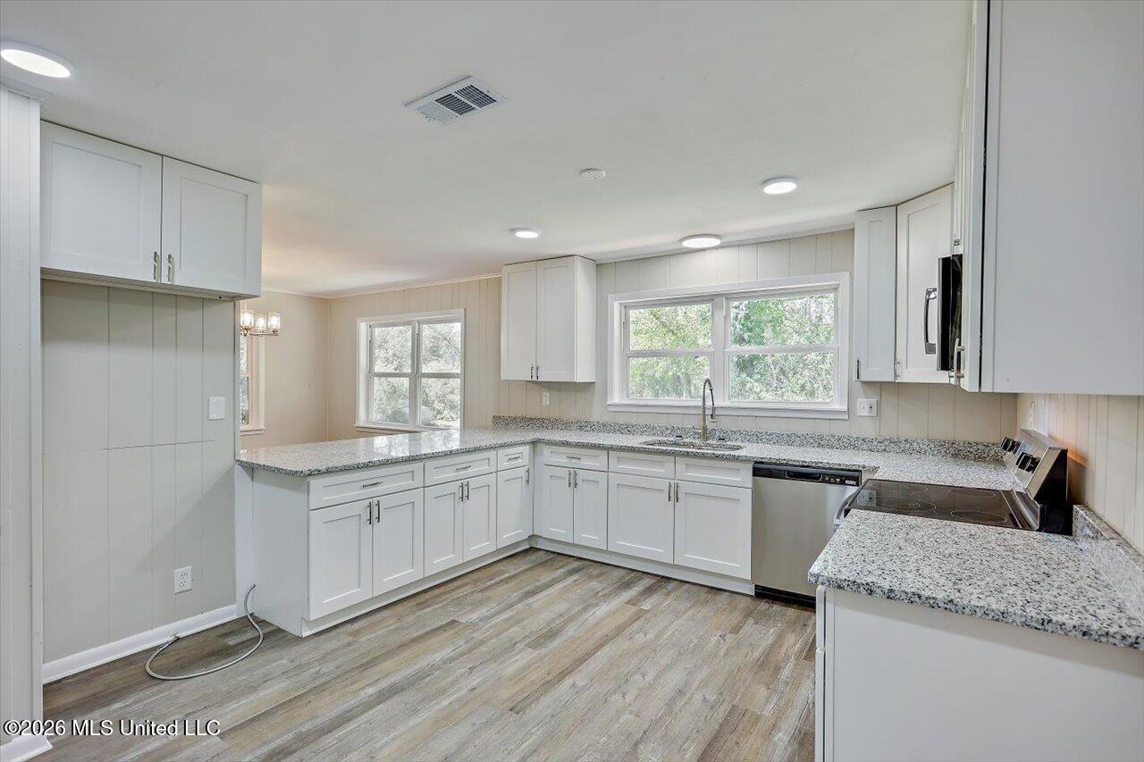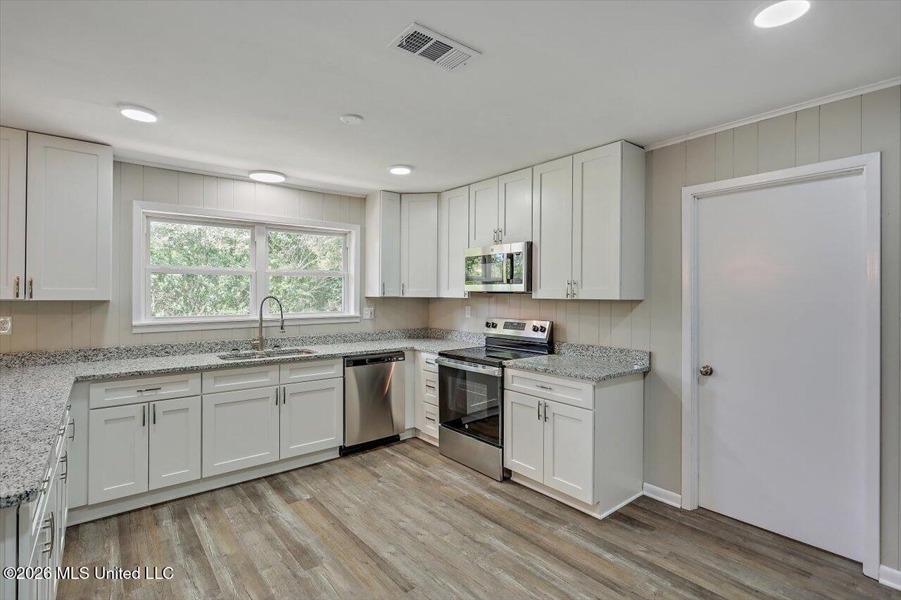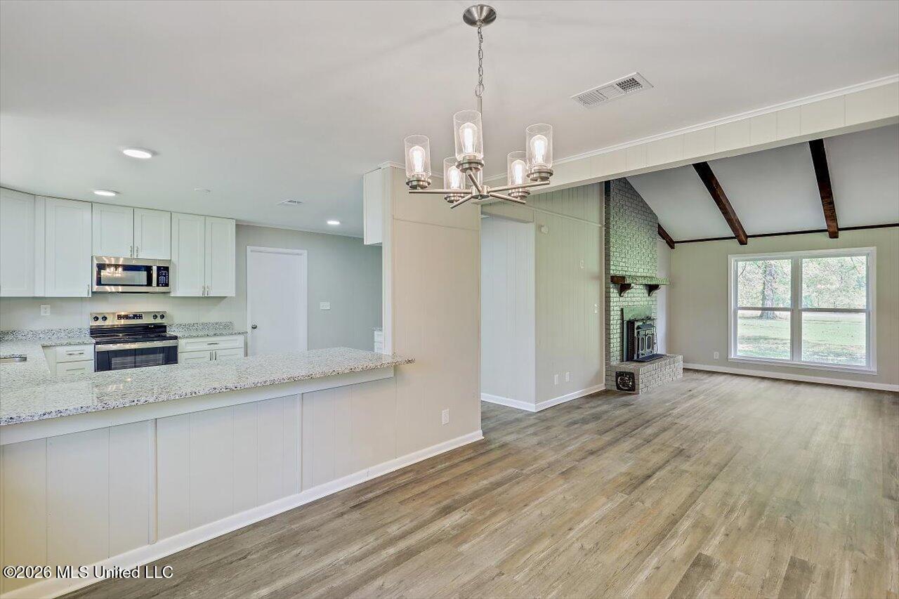 Details:Recently remodeled brick ranch home in the Wesson School district. You get the benefit of the vaulted ceiling with exposed beams in the living room with raised brick hearth fireplace and neutral clicklock flooring in high traffic areas. Kitchen has white recessed shaker style cabinets with granite countertops and nickel accents. And don't forget the large paned windows touting a more modern flair. The fresh paint everywhere may be a given but it is certainly not an understatement. And as far as the setting goes, you will find this 4 bed 2 bath home sitting on 36.36 country acres a most appealing commodity. Don't miss this opportunity to plant your roots in Wesson, MS.