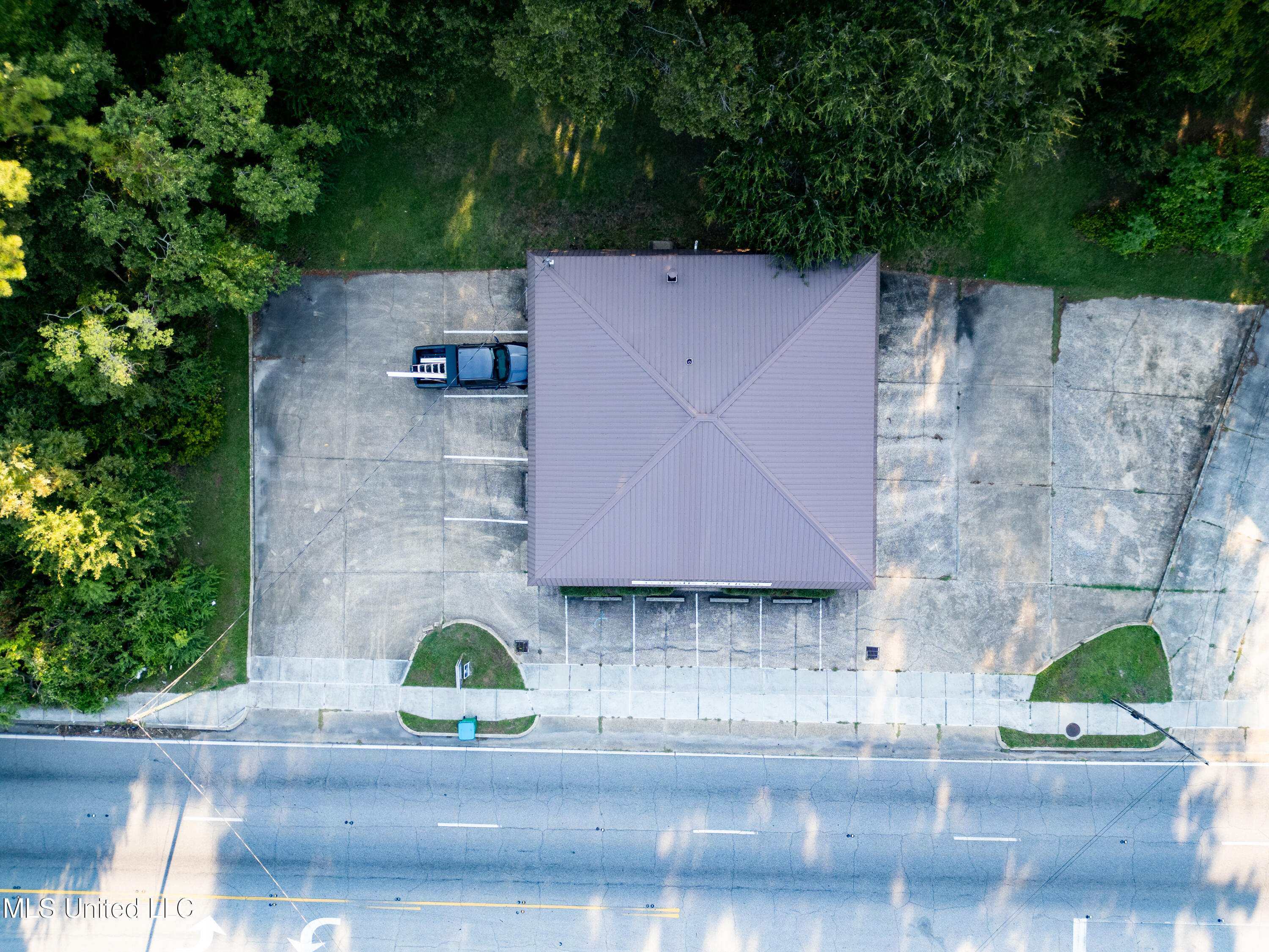The second floor has a full living space that includes a kitchen, full bathroom, living room, and three bedrooms for living or storage. There is also walk-in attic access on the second floor for additional storage. Washer/dryer hookups are located on both the first and second floors. There are two front doors and two back doors that bring to you the parking lot on both sides of the building. Additional green space is located behind the office.