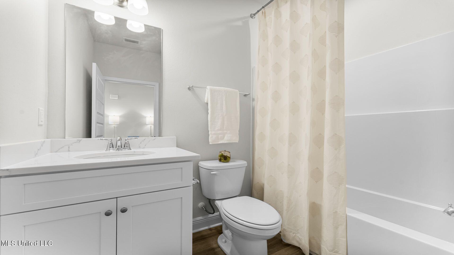 Details:Discover the Madison, a beautifully designed floor plan at The Hollows, our charming new community in Pearl, MS. This thoughtfully crafted home features 4 bedrooms, 3 bathrooms, and a 3-car garage, offering 2,010 square feet of modern and functional living space. Step through the covered front porch into a welcoming foyer and hallway. To one side, a private hallway leads to a spacious double-vanity bathroom, bedrooms 2 and 3, and generous storage. On the opposite side, another hall provides access to the laundry room, garage entry, and bedroom 4 with an additional bath, complete with additional storage space—ideal for guests or a home office. Continue into the heart of the home, where a bright and airy living area seamlessly connects to the modern kitchen. This open concept space is perfect for entertaining and everyday living. The living room is filled with natural light from large windows and features elegant tray ceilings, enhancing its spacious feel. The modern kitchen boasts quartz countertops, stainless steel appliances, shaker-style cabinetry, pantry storage, and a central island with bar seating. The adjacent dining space offers access to a covered back patio, perfect for enjoying morning coffee or evening relaxation. Tucked away for privacy, the primary suite is a true retreat. It features large windows, tray ceilings, and an ensuite bath with a garden tub, separate shower, double quartz vanities, linen storage, and a generous walk-in closet. *Pictures may be of a similar home and not necessarily of the subject property. Pictures are representational only.