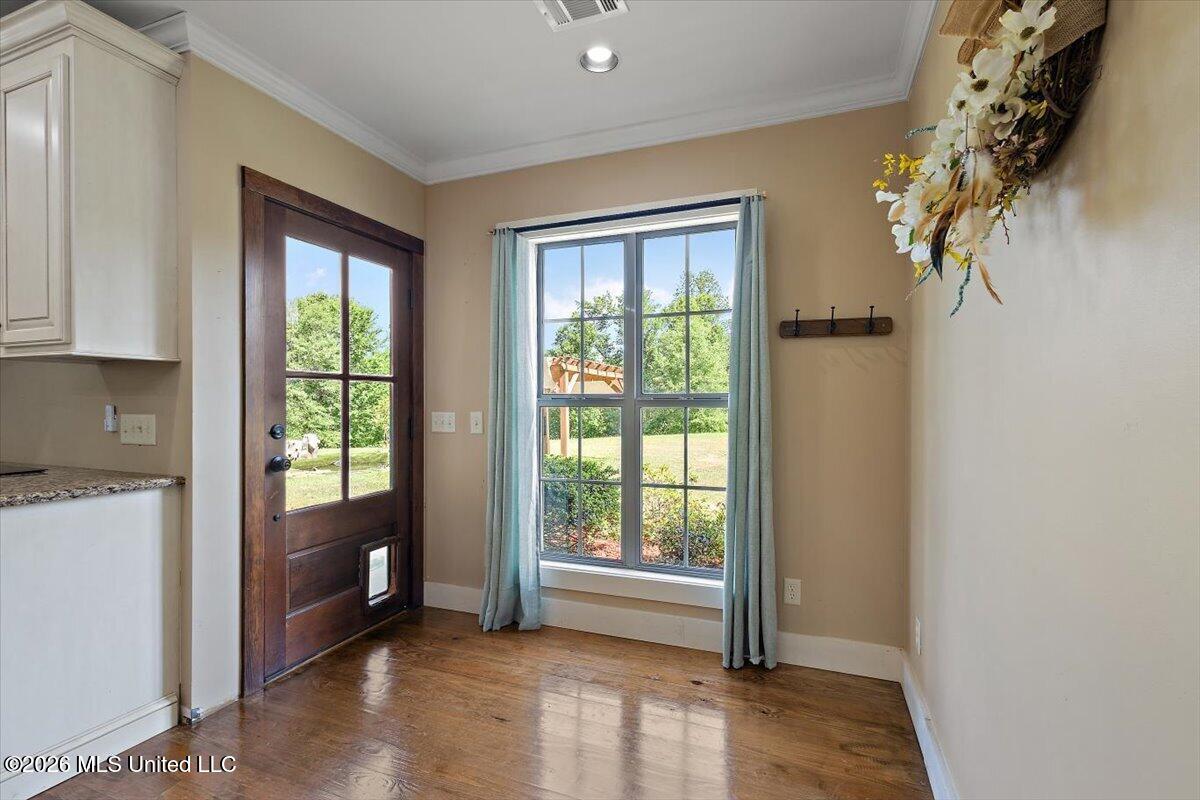 Details:Tucked away in the highly sought after Clarkdale school district, this exceptional property offers privacy, space, and unique craftsmanship on 12 open acres surrounded by serene woods. This fully furnished home features 3 bedrooms, a spacious living room with soaring ceilings, and striking oversized wood beams repurposed from the historic Meridian hotel. The interior showcases pine flooring milled directly from trees on the property, along with granite countertops in both the kitchen and bathrooms. The kitchen is equipped with stainless steel appliances, while modern conveniences include Alexa-compatible smart thermostats, a central vacuum system, and a wired surround sound speaker system throughout the home. Step outside to enjoy a beautifully designed backyard featuring a large open space and a stunning 18' round pond with a cascading waterfall feature. The back porch is an entertainer's dream, complete with a built-in bar, propane stove, and mounted TV. Perfect for hosting gatherings or relaxing evenings. Don't miss out on this beautiful home!