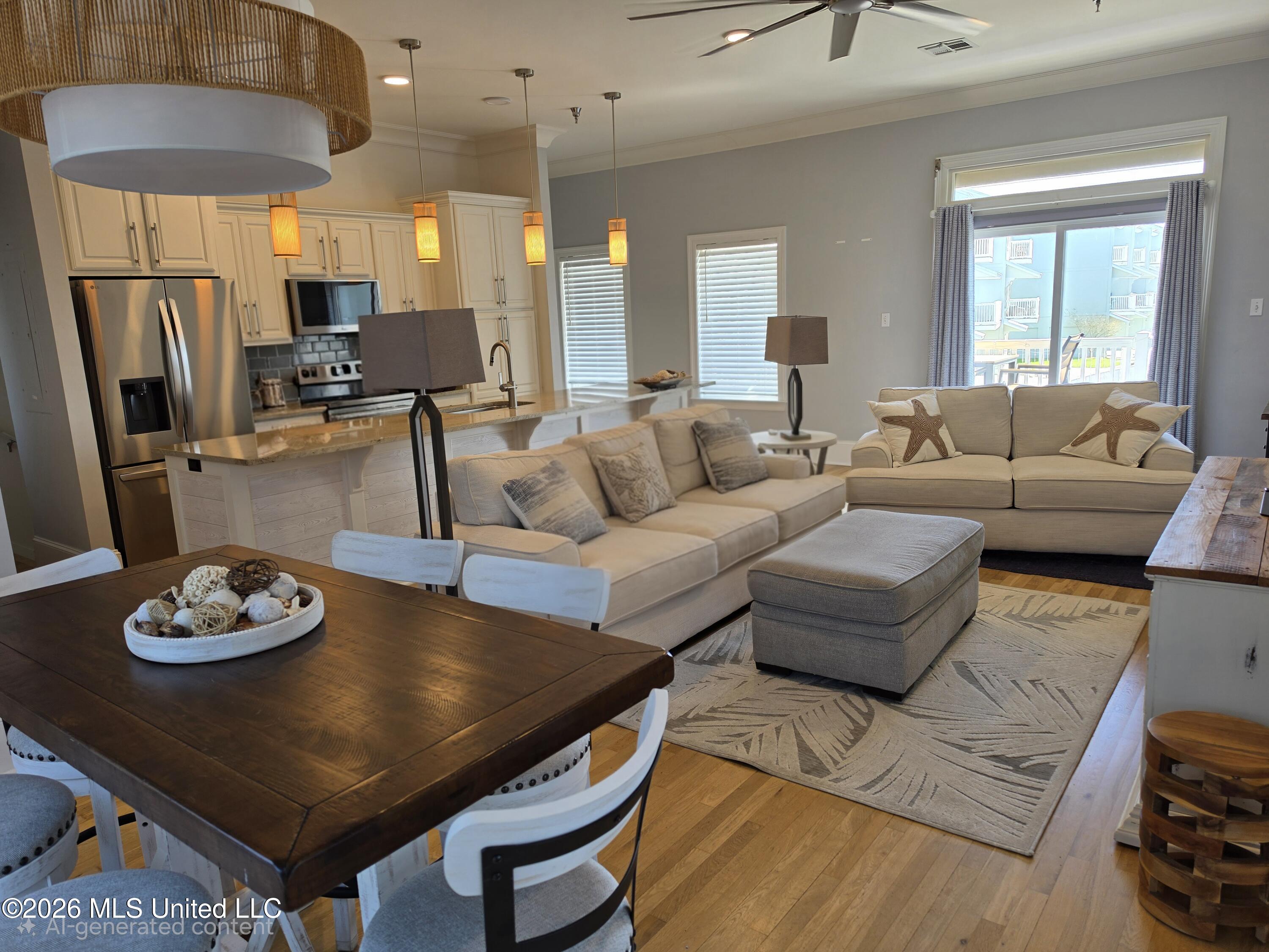 Details:Motivated Seller. NO UPDATES NEEDED HERE! This exquisite 2-bedroom, 2.5-bath townhome in the highly desirable Beachwalk community offers the perfect blend of coastal luxury and modern convenience, just across from the pristine sugar-white sands of the Gulf of America. Enjoy your morning coffee or evening cocktails while soaking in serene Gulf views from the private balconies on both levels. The open-concept living, dining, and kitchen area features beautiful hardwood floors and a spacious island--ideal for family gatherings and effortless entertaining. Recent updates include brand-new stainless steel appliances including refrigerator and full-size washer and dryer, dual-zone HVAC system with smart thermostat, updated ceiling fans and light fixtures. A rare in-unit elevator provides easy access for groceries and luggage, while hurricane shutters offer added security and peace of mind. Additional highlights include a generous 2-car garage, and the opportunity to relax by the community's crystal-clear saltwater pool on warm Gulf Coast days. The HOA covers grounds maintenance, pool, exterior insurance, flood insurance, water, garbage, and exterior pest control--ensuring low-maintenance living in a beautifully maintained community. Move-in ready and perfectly timed for spring along with the area's popular events and coastal lifestyle. This well-appointed residence is an exceptional opportunity for those seeking turnkey beachside living in a golf cart friendly community. All living room furniture, dining area furniture and balcony furniture (only one year old) stay with acceptable offer. Owner/agent.