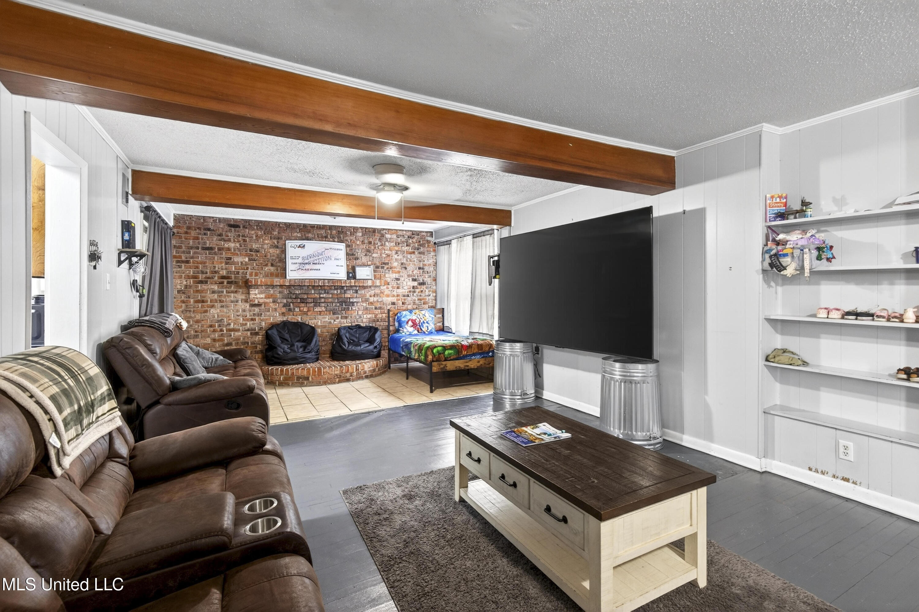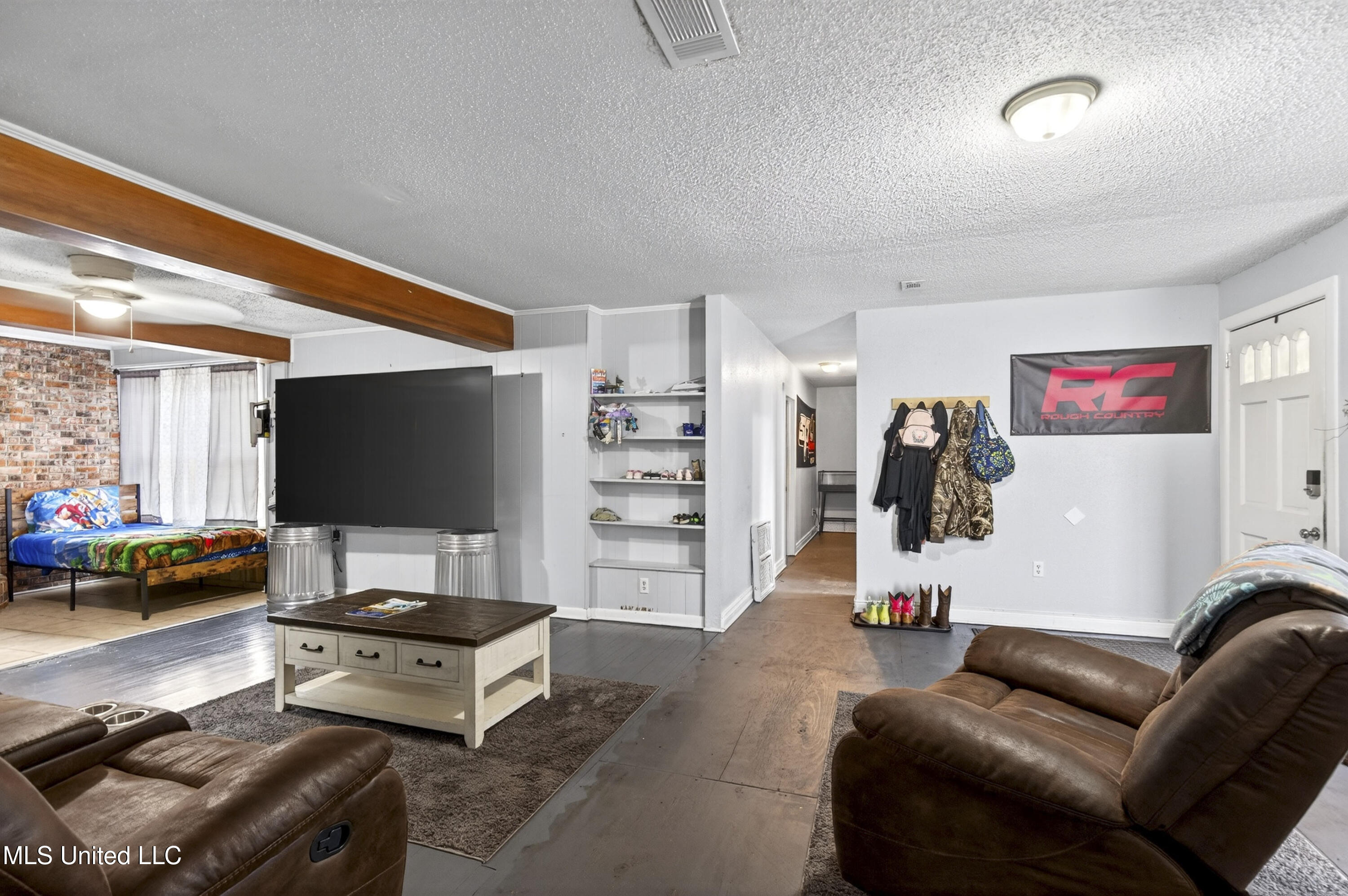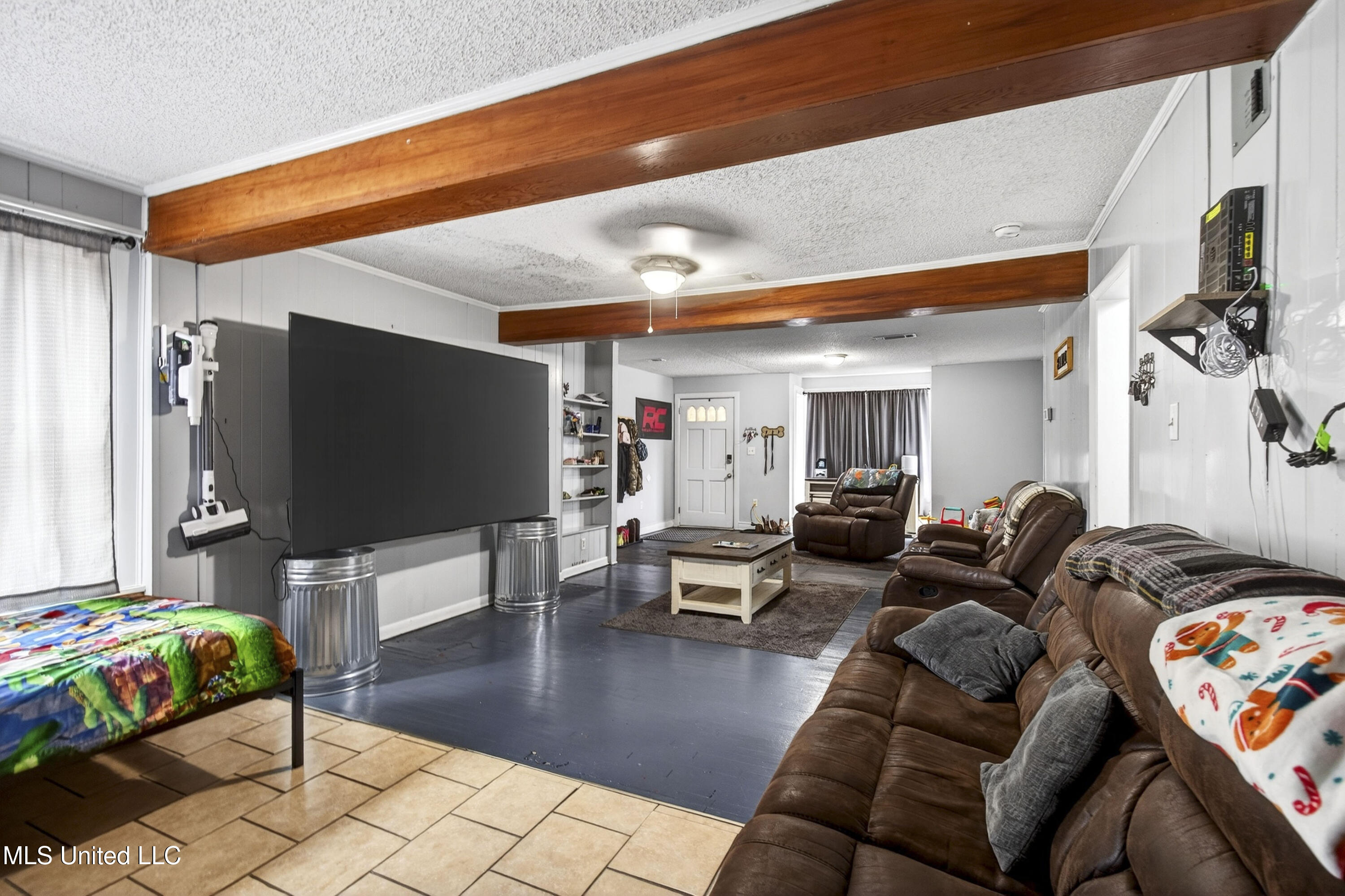 The living room provides a warm, comfortable setting perfect for relaxing with family or entertaining guests, enhanced by wood accents and a thoughtfully designed layout. A seamless flow between the main living areas and bedrooms adds to the home's practicality and ease of living. For added peace of mind, the home includes a solar-powered security system and updated outlets throughout.