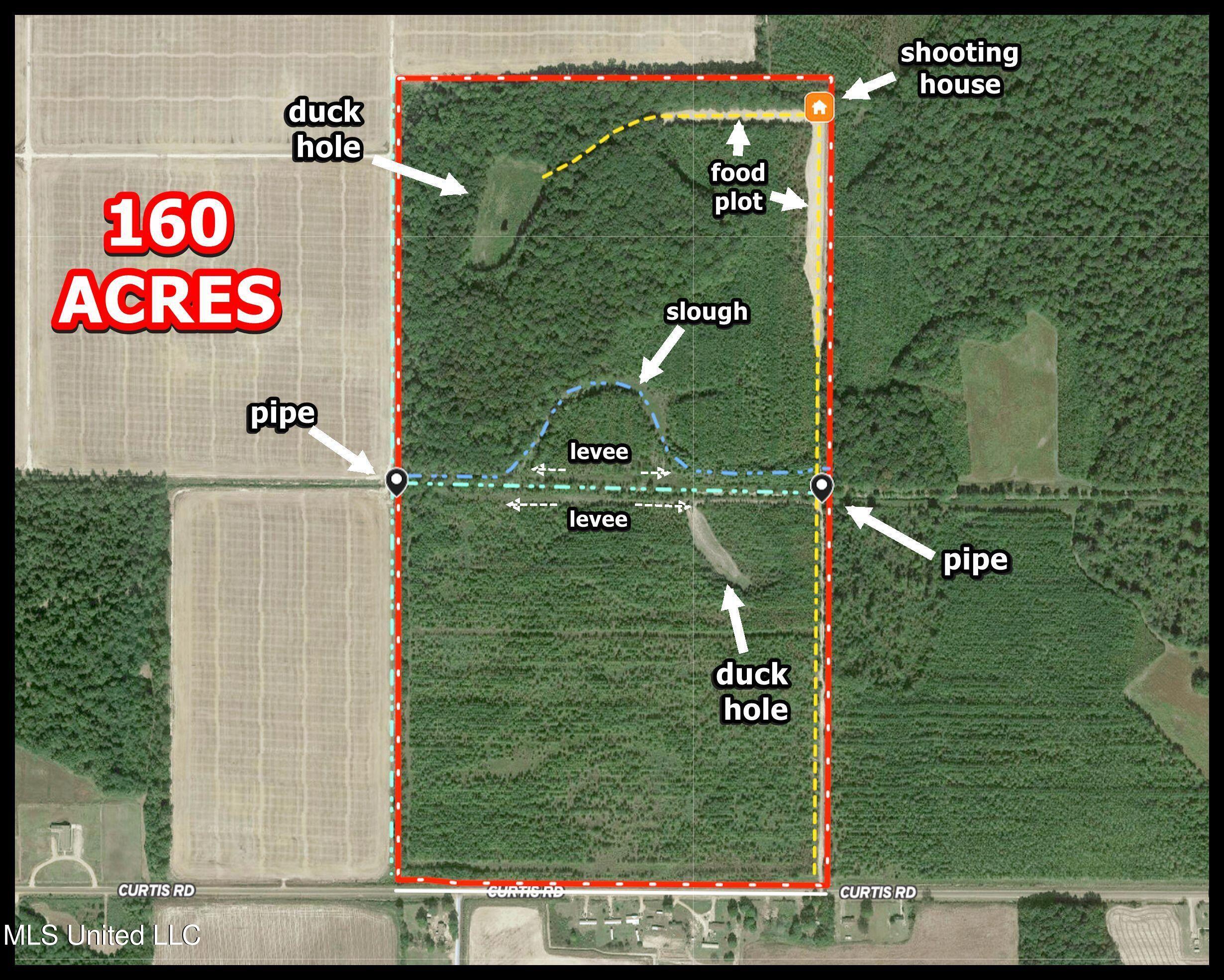Details:Deer. Turkeys. Ducks. Timber. Income. This delta property has everything for the avid hunter. Located seven miles west of Batesville, this 160-acre timber tract is partially levied with structures to be able to naturally flood the timber and duck holes during winter. A large shooting house in the northeast corner overlooks a stretch of 3 acres of big broad food plots where deer and turkeys love to graze. (And yes, this area is surprisingly heavy with turkeys, too.) Another 3-acre food plot/duck hole is in the northwest corner with some big hardwoods around it, offering good roost trees for turkeys. Two levees cut across the middle with a drainage ditch between them and pipes at both ends. A cypress slough also winds across the middle of the tract along the levee. The income is a nice plus. There are 109 acres in the CRP program drawing $9,536 annually until September of 2033. The road system and levees are rock solid. You can drive from the entrance on Curtis Road up and down both levees and straight to the shooting house and northern duck hole, too. Neighboring farm ground and large land owners all around make this tract even more appealing. It's conveniently located just ten minutes from Batesville, 40 minutes from Oxford, and an hour south of Memphis. Electricity is available through TVEPA, and fiber optic internet through TVI-Fiber in case you want to have a campsite in the future. And if you get hungry after your hunt, no worries - grab a home-cooked burger, loaded fries, or nachos from Wings & More, a little take-out diner just down the road. Get ready to enjoy years of hunting on your own land with a great timber investment for the future.