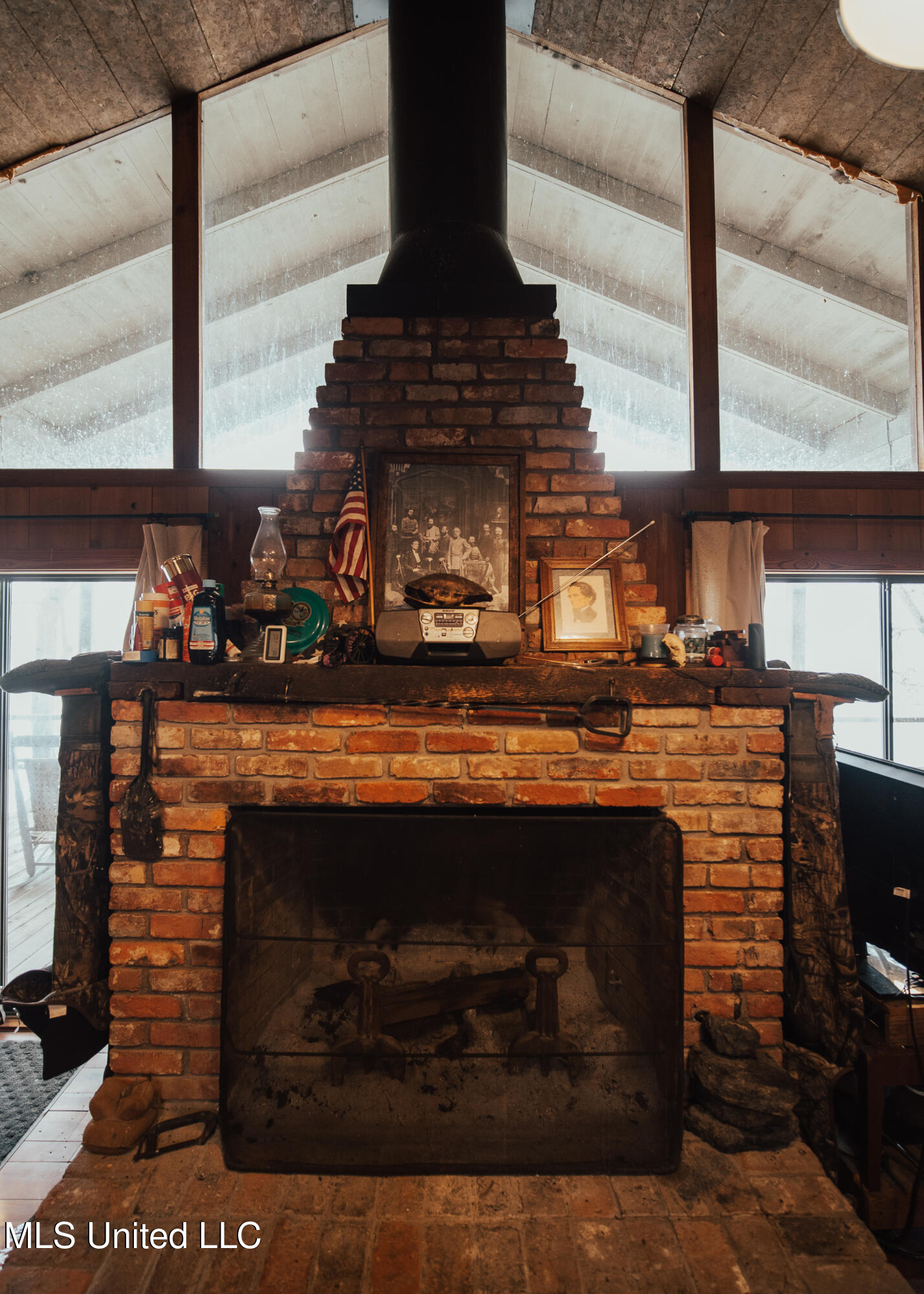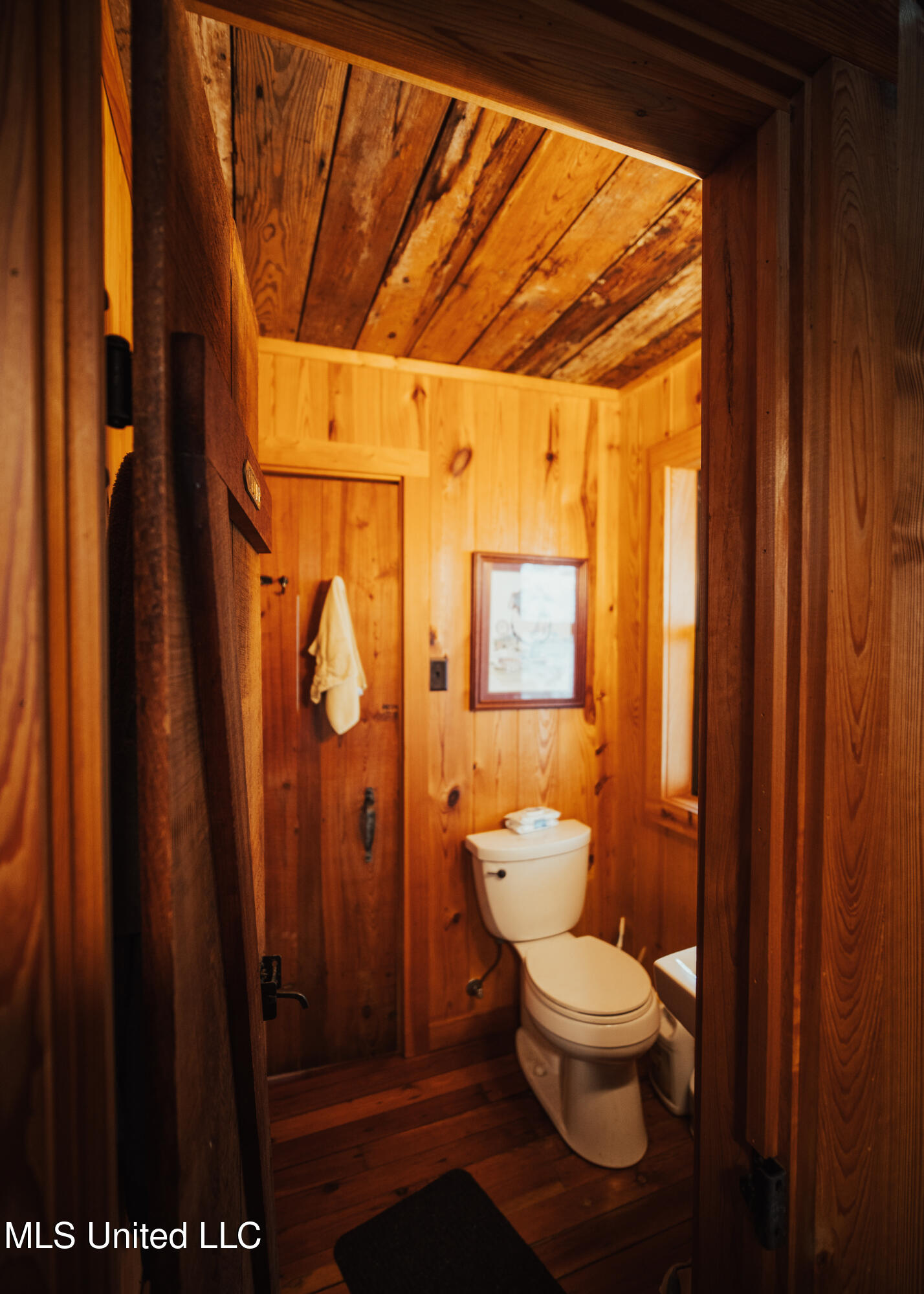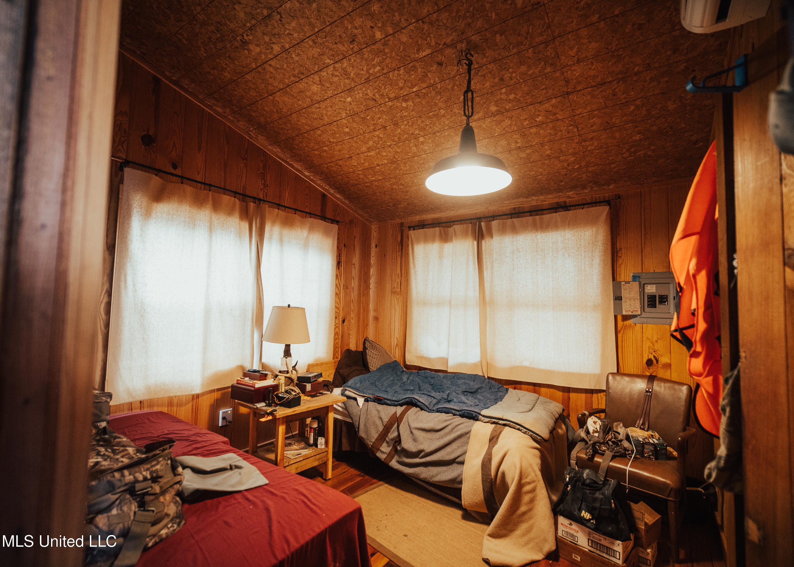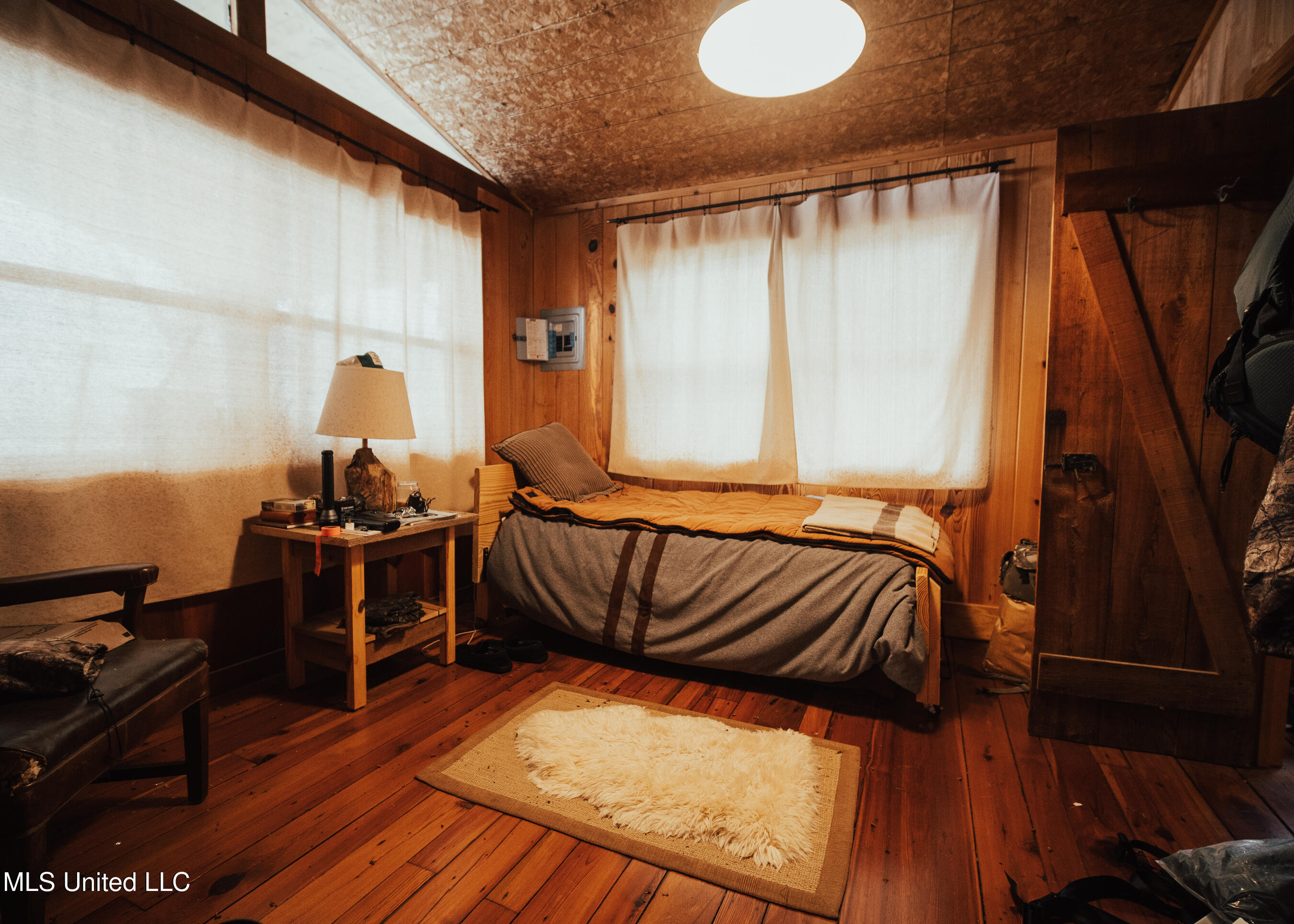 family cookouts or a place to enjoy a cup of coffee while overlooking the water. As you enter the 1,408± square foot cabin, you will appreciate the old 1933 heart yellow pine interior with a real wood-burning fireplace that screams, ''Come on winter!'' The beautiful cypress flooring will quickly catch your eye. The great room and kitchen area share a vaulted ceiling with a rustic river bottom
