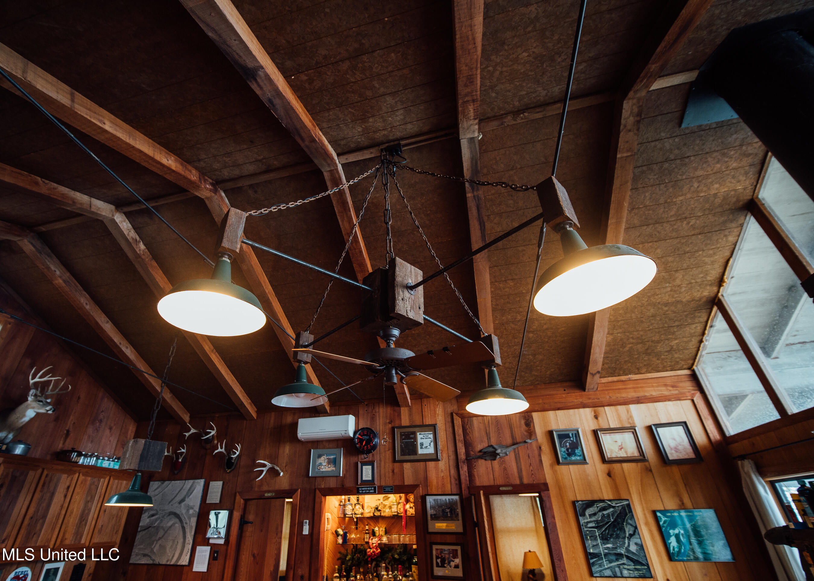 made chandelier, and located off to the side is a small bar, perfect for all your cocktail needs. On each side of the great room/kitchen, you will find two bedrooms and one bathroom. The cabin was constructed in 1974 by the current sellers and has been part of countless memories ever since. Outside, there is a boat shed and your private concrete boat ramp to Lake Albemarle. You will have endless fishing opportunities in the summer and duck hunting opportunities in the winter. The land makeup is predominately mature, bottomland hardwoods. There are multiple stand